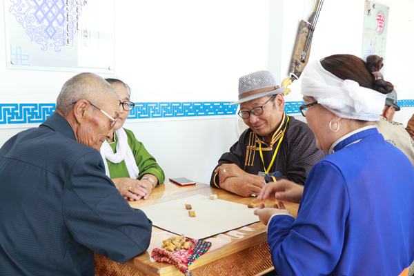 在錫林浩特市愛祺樂牧民養(yǎng)老園區(qū),記者看到了這樣的畫面:身著鮮艷蒙古族服裝的老人們,三五成群聚在一起,唱歌、跳舞、練書法、玩沙嘎、縫制民族服飾……生活豐富多彩!當天正值園區(qū)開那達慕,跟草原上的那達慕大會不同,這里是專門為園區(qū)的老人而開。“老人們歲數(shù)大了,不能出遠門去看那達慕,我們就專門為他們辦了一個,腿腳不好的老人也能看。”錫林浩特市巴彥查干街道黨工委書記額爾德木圖說。