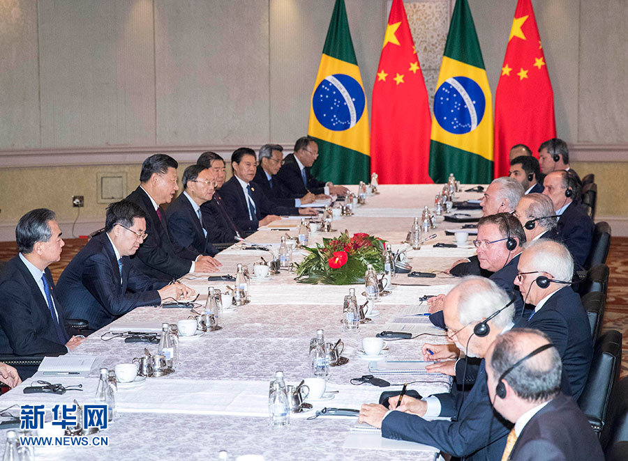 習近平強調,中巴雙方要加強對兩國各領域交流合作的引領和協調,促進貿易自由化便利化,推動雙邊貿易高質量增長,積極探討“一帶一路”倡議同巴西“投資伙伴計劃”等發展規劃對接,推進標志性項目,拓展創新合作,密切人文交流。中方愿同巴方攜手推進中拉整體合作,推動中國同葡萄牙語國家經貿合作邁上新臺階。中方支持巴方辦好下屆金磚國家領導人會晤。