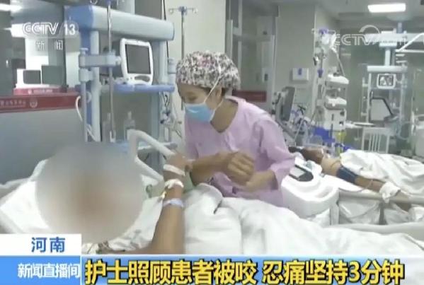 近日,在河南新鄉(xiāng)市醫(yī)學(xué)院第一附屬醫(yī)院的急診監(jiān)護(hù)室內(nèi),護(hù)士劉珊在照料重傷病患時(shí),手臂突然被患者咬住。因?yàn)閾?dān)心掙脫會(huì)導(dǎo)致病人身上的插管脫落,劉珊就一直沒有將手臂拿開。直到醫(yī)護(hù)人員給患者打了鎮(zhèn)靜劑后,患者才慢慢松開了牙齒,此時(shí)劉珊已經(jīng)堅(jiān)持了3分鐘。