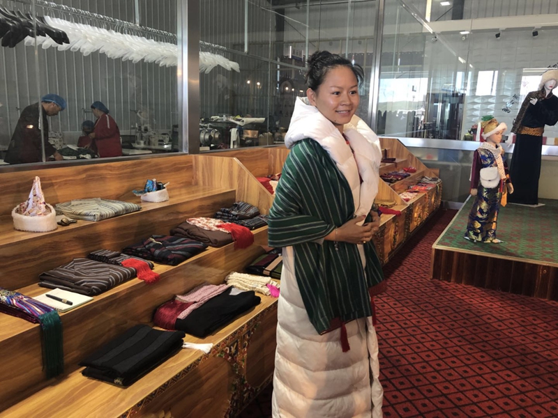 28歲的東格央宗拉姆對自己店內的服裝如數家珍。她的服裝公司今年6月剛剛起步,當地政府以每月每平方米10元的低租金為她這樣的創業者提供廠房。