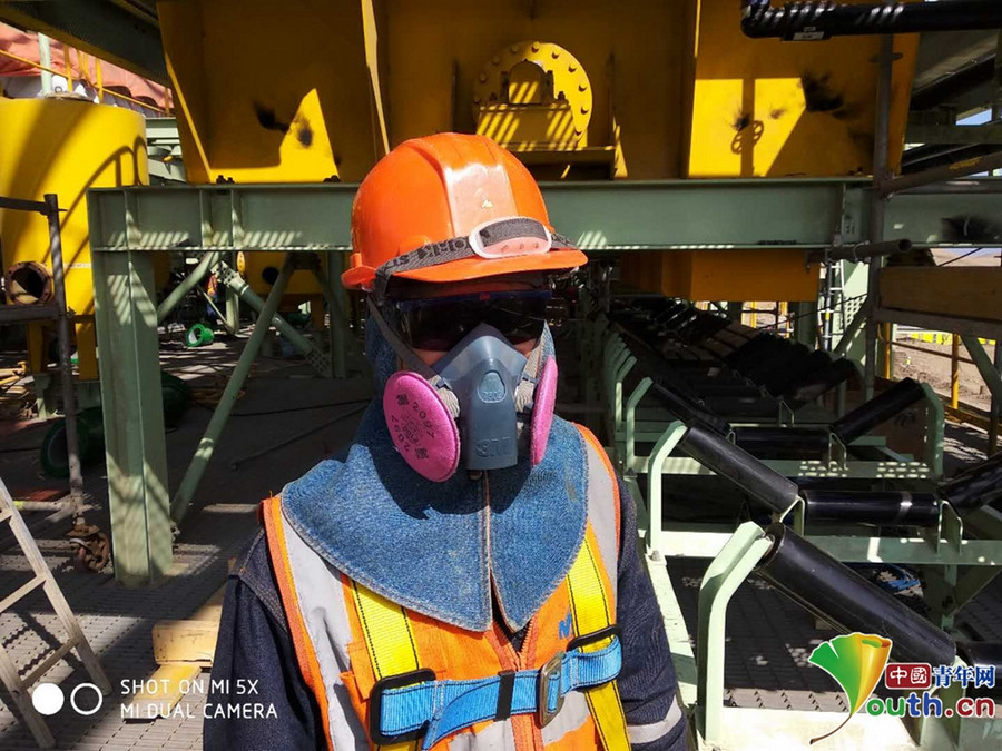 張松領在秘魯工地全副武裝。本人供圖