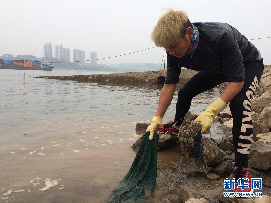 2016年12月3日,“三峽蟻工”組織發(fā)起人李年邦在江灘邊撿垃圾。2016年10月,在李年邦的發(fā)起下,“三峽蟻工”志愿者組織正式成立,300多名固定成員成為長江垃圾清理的主力軍,他們以“保護長江母親河”為口號,每逢周末和法定節(jié)假日都會自發(fā)組織在長江岸邊撿拾垃圾。 新華社記者 王自宸 攝