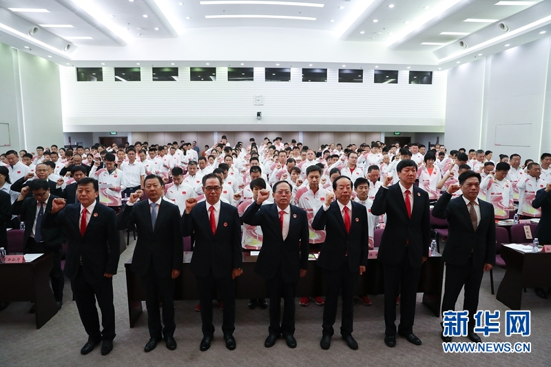 動員大會上,代表團領導介紹了代表團組團情況,并宣布成立代表團臨時黨委。隨后,代表團舉行宣誓儀式,運動員和教練員代表分別進行了講話,各運動隊還遞交了“賽風賽紀和反興奮劑工作責任書”。
