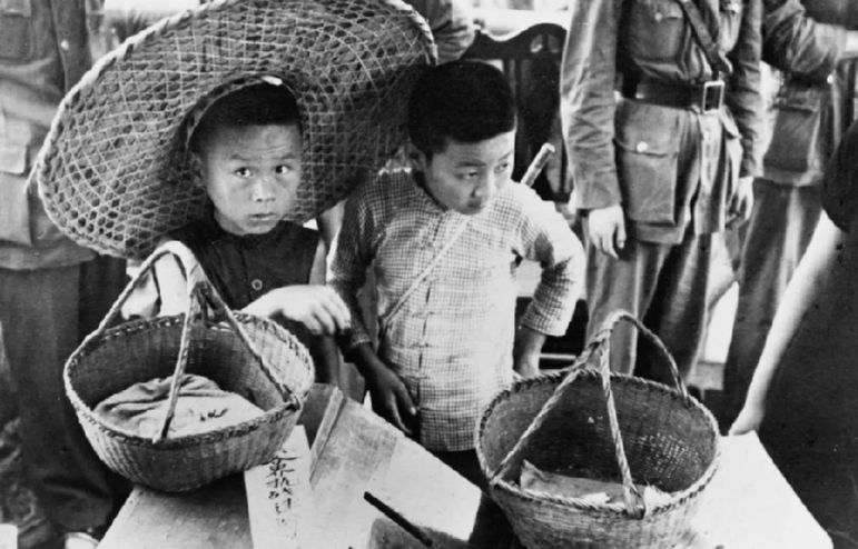 1938年7月7日,武漢民眾開展抗日獻金運動。這是賣白蘭花的兒童把售花所得獻給抗日運動。新華社發(fā)