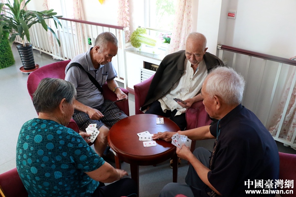 社區內的老人們正在進行棋牌游戲。(中國臺灣網 尹賽楠 攝)