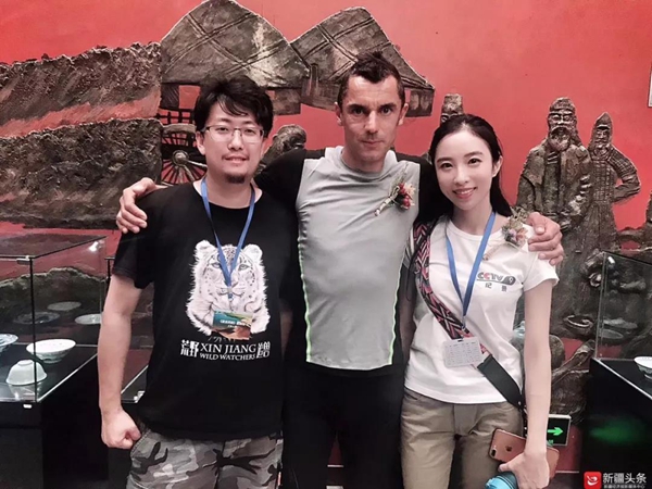 從左至右,央視導演劉曉,極限挑戰者讓·瑪利,央視導演劉千僡。圖 新疆經濟報新媒體中心記者邢靚