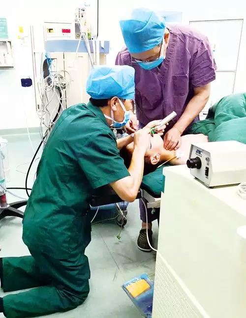 神情專注地給手術(shù)床上的年僅7歲小患者進(jìn)行麻醉。