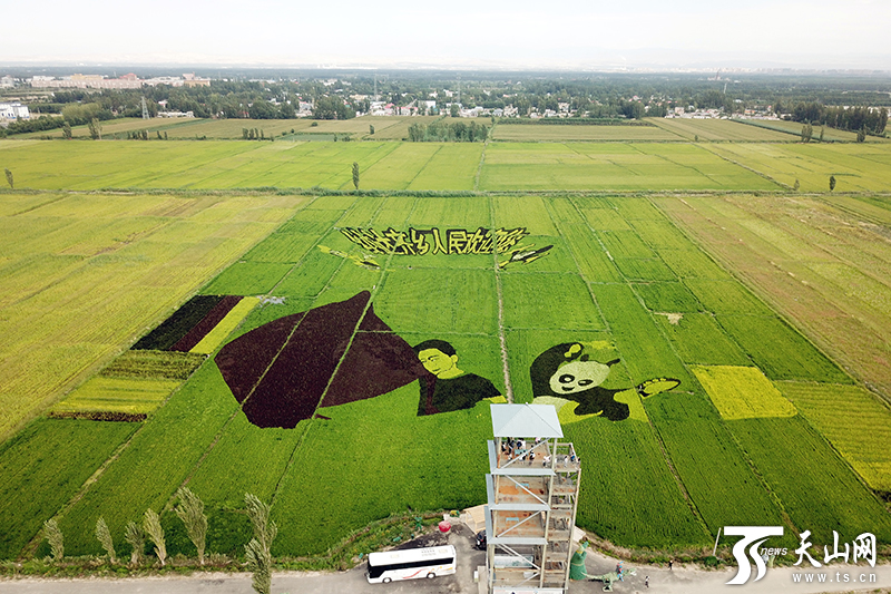 田里種出畫(huà),這不是3D電影特效!這是新疆伊犁哈薩克自治州察布查爾錫伯自治縣納達(dá)齊牛錄鄉(xiāng)的3D稻田畫(huà)。