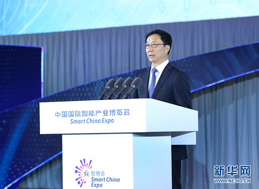 8月23日,首屆中國(guó)國(guó)際智能產(chǎn)業(yè)博覽會(huì)在重慶開(kāi)幕。中共中央政治局常委、國(guó)務(wù)院副總理韓正出席開(kāi)幕式,宣讀習(xí)近平主席的賀信并致辭。新華社記者 龐興雷 攝