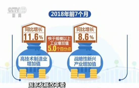 今年前7個月,高技術制造業(yè)、戰(zhàn)略性新興產業(yè)增加值同比分別增長11.6%和8.6%,分別快于規(guī)模以上工業(yè)5.0和2.0個百分點;高技術制造業(yè)占規(guī)模以上工業(yè)比重已經(jīng)達到13%,同比提高0.7個百分點。