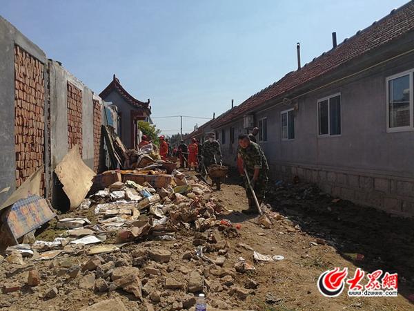 “前兩天泄洪時(shí),洪水漫過路面進(jìn)入了口子村,最深處積水有兩米多深。”上口鎮(zhèn)黨委副書記張文杰告訴記者,口子村是壽光當(dāng)?shù)厥転?zāi)最嚴(yán)重的村莊之一,為了防止即將到來的暴雨對(duì)口子村產(chǎn)生二次災(zāi)害,目前來自臨沂、泰安兩地的900名消防官兵正在和500多名當(dāng)?shù)馗刹咳罕姟⒅驹刚咭黄鹱ゾo時(shí)間對(duì)村里的垃圾和淤泥進(jìn)行清理。抽排積水。
