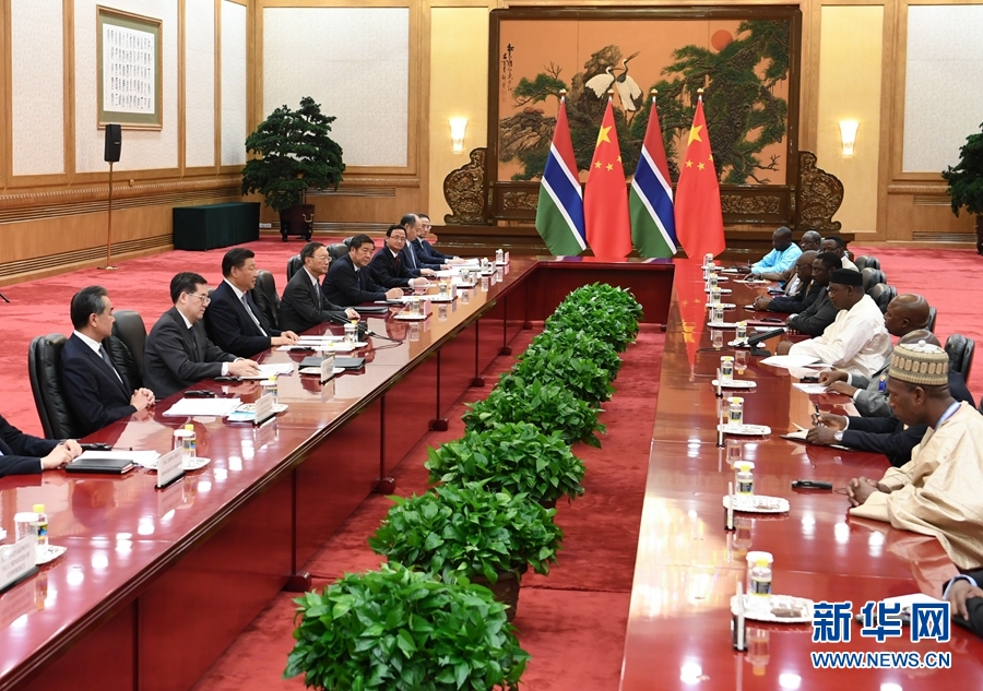 習近平歡迎岡比亞總統(tǒng)首次出席中非合作論壇會議,指出這對中岡關系、中非關系、論壇建設均具有重要意義。習近平強調,中岡復交2年多來,雙方友好合作全面、順利推進,雙邊關系發(fā)展得很好、很快,中方對兩國關系發(fā)展取得的成果感到滿意。中方贊賞總統(tǒng)先生和岡比亞政府堅持一個中國原則,愿同岡方繼續(xù)把握好兩國關系的大方向,不斷增進政治互信,繼續(xù)在涉及彼此核心利益和重大關切問題上相互堅定支持。中方支持岡比亞政府“建設新岡比亞”的努力,愿加強務實合作,擴大人文交流。中方支持岡方加強和平安全能力建設。
