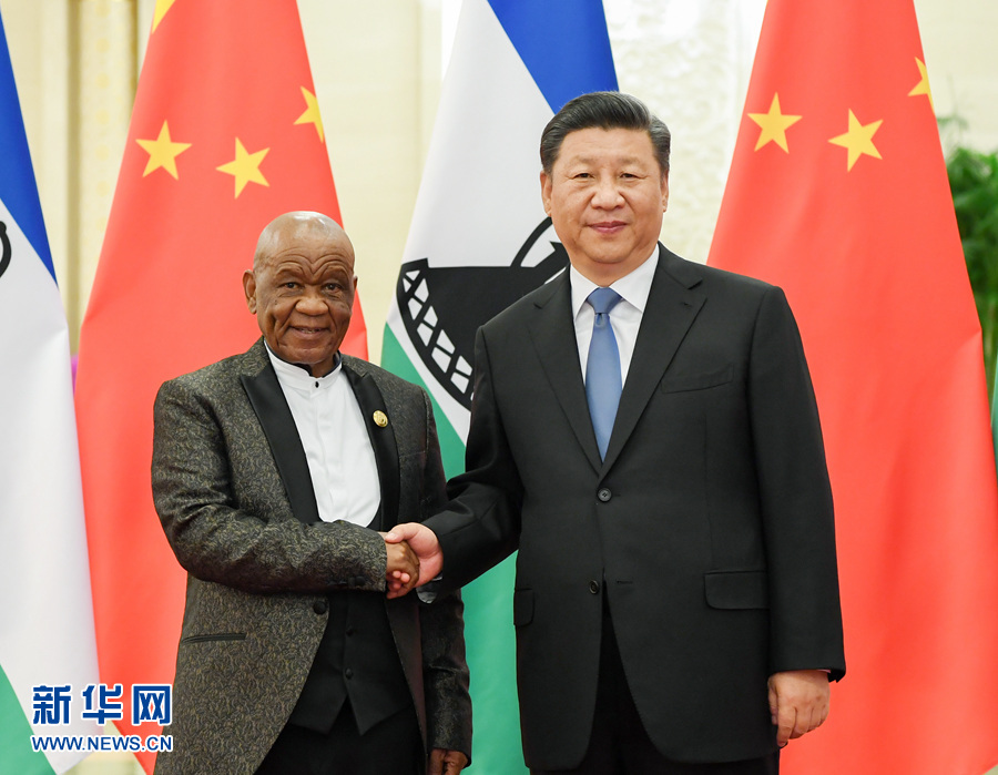 9月6日,國家主席習近平在北京人民大會堂會見萊索托首相塔巴內。 新華社記者 饒愛民 攝