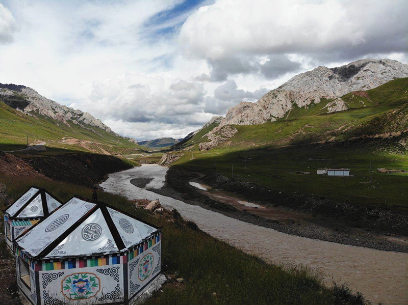 “彩色帳篷”——垃圾轉運站,與三江源美景相映成趣。 人民網記者 余璐攝