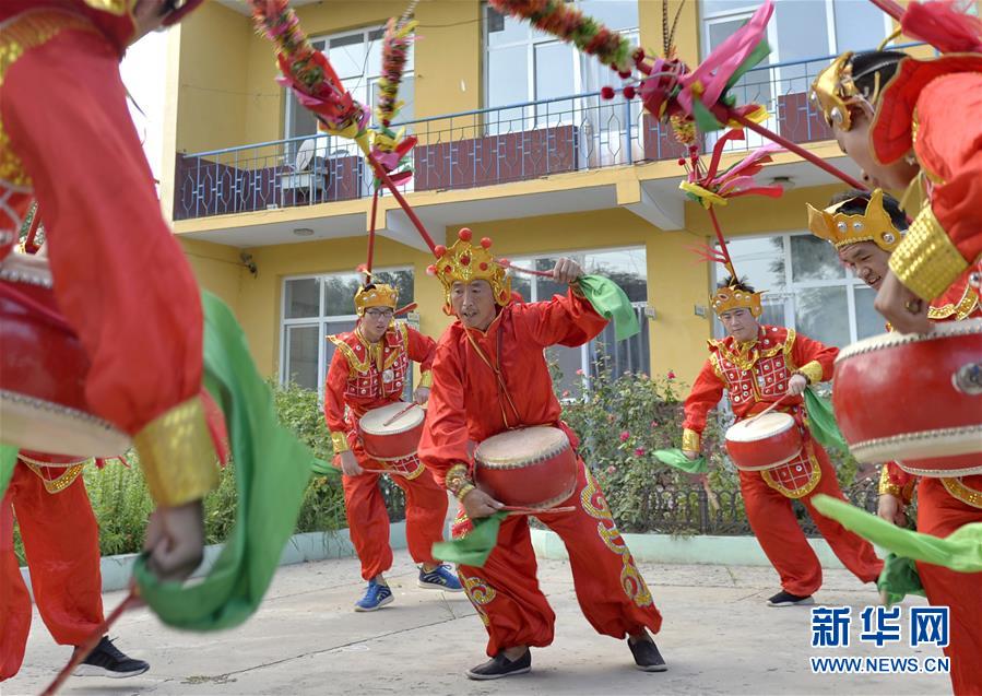 招子鼓藝人(中)為隆堯縣滏陽中學(xué)學(xué)生教授招子鼓表演技巧