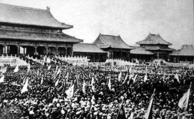 圖示:1945年9月,北平(今北京)各界民眾慶祝抗戰(zhàn)勝利。