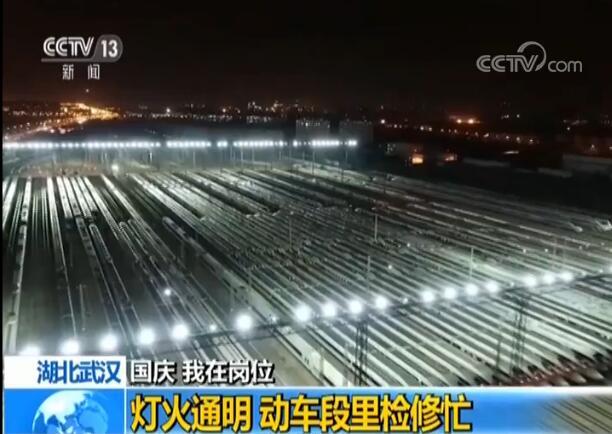 武漢動車段是全國規模較大的高速列車檢修基地之一,重點承擔中南地區的動車組檢修任務。國慶期間,每天晚上,有將近100趟動車組回到這里進行檢修養護,整齊排列的高鐵動車,萬箭待發,就如同“陸地航母”一樣,非常壯觀。