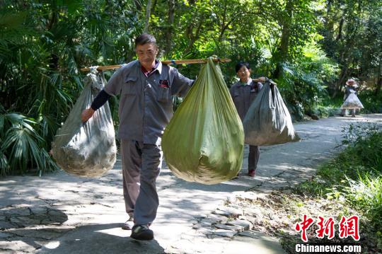 “十一”黃金周,廣大市民游客紛紛開啟休假模式,而環衛工人依然堅守崗位。在南京中山陵的藍瓦白墻下,流動著這樣一群身影,他們穿著藏藍色工作服,手拿保潔工具,彎著腰,低著頭工作著,全心全力地保障景區的衛生環境。徐道海、陳紅霞就是其中的兩位,據了解,他們在鐘山風景區服務了近20年,每天的工作就是將祭堂外的垃圾清運至山下的垃圾中轉站去。他們每天在392級臺階上往返15趟。一位年輕游客說,“這兩位師傅真是了不起,看到他們,我們哪好意思再亂扔垃圾呀!”徐道海師傅憨憨的笑著說:“我在景區工作20年了,把景區當做我的家,不管再苦再累,我也要將景區打掃干凈,這不僅是給游客留下一個好印象,也是對先人的敬仰和尊重。”