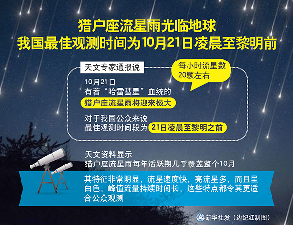 圖表:獵戶座流星雨光臨地球 我國最佳觀測時間為10月21日凌晨至黎明前 新華社發 邊紀紅 制圖