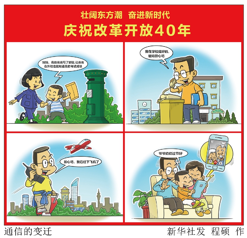 通信:以前,我們靠寫信,讓爸媽在外地也能知道我們的考試成績;后來,我們用座機,告訴爸媽“我在學校挺好的”;再后來,我們無論出行到哪里,都可以隨時拿出手機跟家人說聲“放心吧”;如今,我們更加可以方便地打開手機視頻,問候爺爺奶奶“過節(jié)好”。↓↓