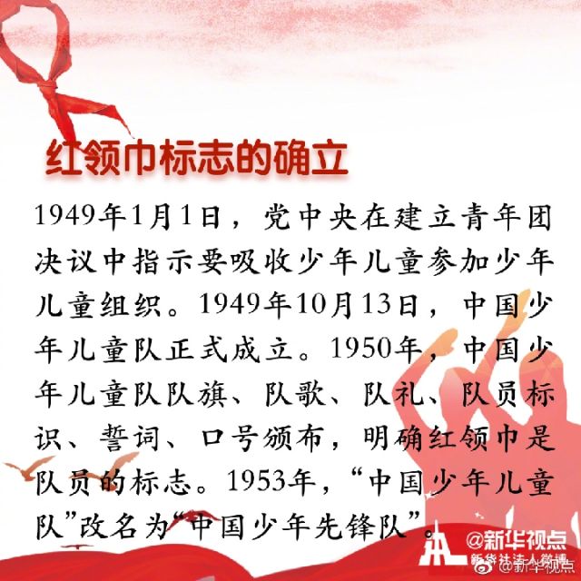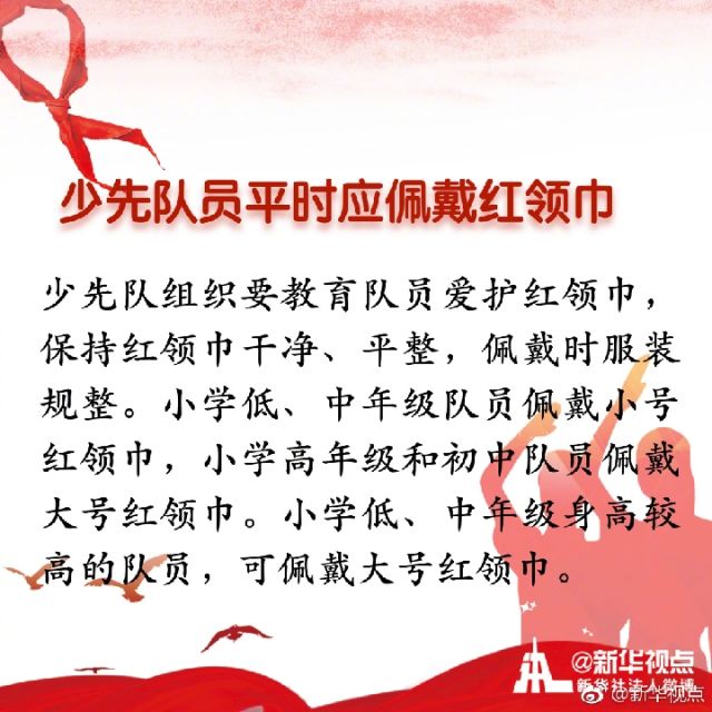“我們是共產主義接班人,繼承革命先輩的光榮傳統,愛祖國,愛人民,鮮艷的紅領巾飄揚在前胸。”紅領巾是紅旗的一角,是少年先鋒隊的象征與標志。你是幾歲佩戴上的紅領巾?你對曾經朝夕相伴的紅領巾了解多少?戳圖看詳解↓↓