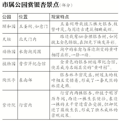 市公園管理中心發布25處多彩秋景推薦,包括天壇北天門內的銀杏大道等