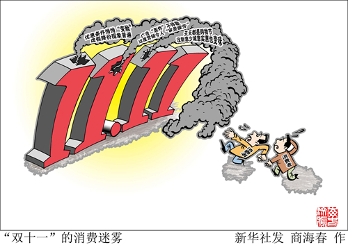 漫畫:“雙十一”的消費(fèi)迷霧 新華社發(fā) 商海春 作