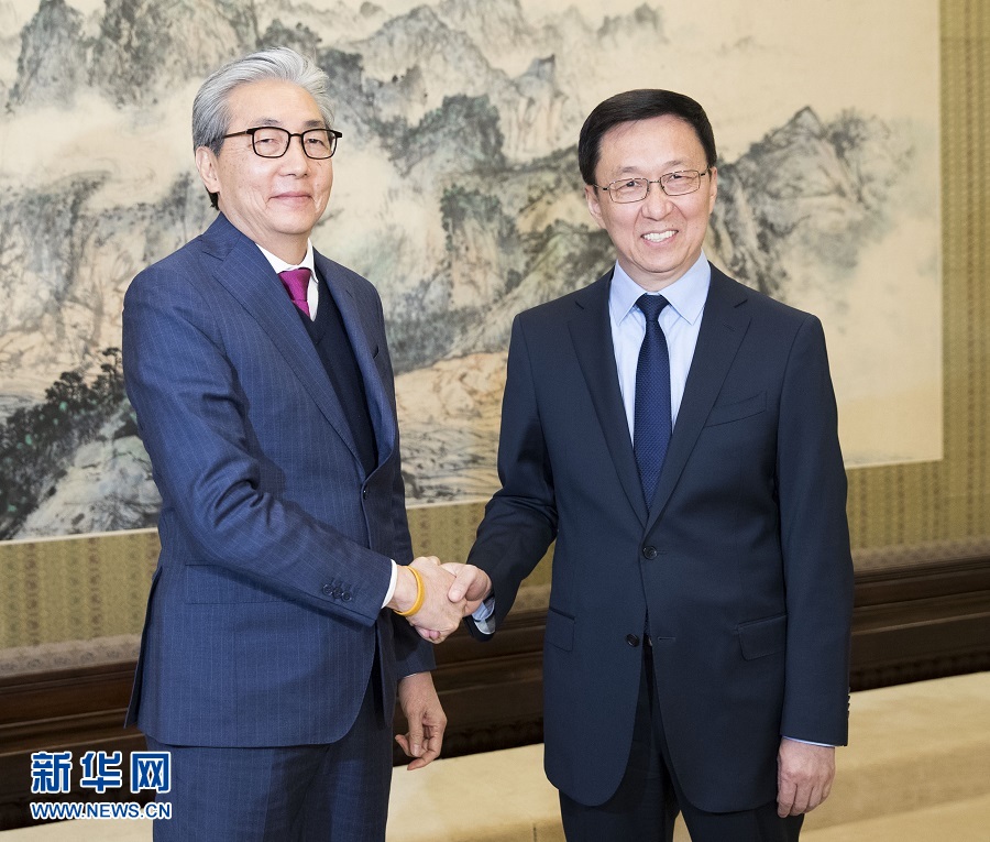 11月6日,中共中央政治局常委、國務院副總理韓正在北京中南海紫光閣會見泰國副總理頌奇。 新華社記者 黃敬文 攝