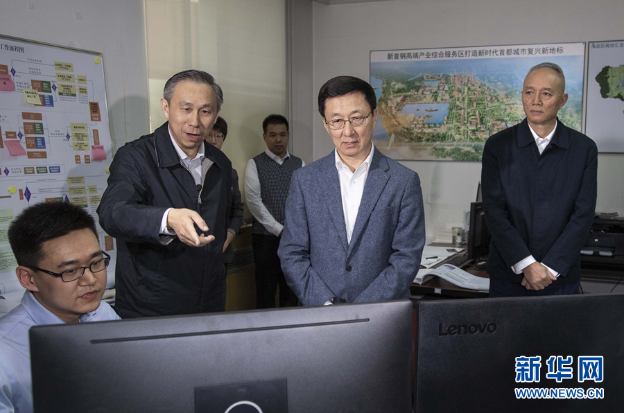 11月8日,中共中央政治局常委、國務(wù)院副總理韓正在北京市調(diào)研并出席工程建設(shè)項目審批制度改革試點工作推進會。這是韓正在北京市規(guī)劃和自然資源委員會,實地調(diào)研“多規(guī)合一”信息系統(tǒng)建設(shè)與數(shù)據(jù)推送工作情況。 新華社記者 李濤 攝