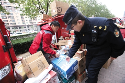 記者11月8日從東城城管獲悉,針對一些快遞包裹集散點“跑馬圈地”占用門前道路卸載、分揀、堆放包裹,快遞車輛亂停亂放的現(xiàn)象,城管等部門開展了執(zhí)法檢查,對違規(guī)占道經(jīng)營行為進行勸誡,嚴重的將對其予以500-5000元的行政處罰。
