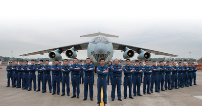 “昆侖雄鷹大隊”在裝備的伊爾—76飛機(jī)前舉行出征儀式。盧炳廣攝