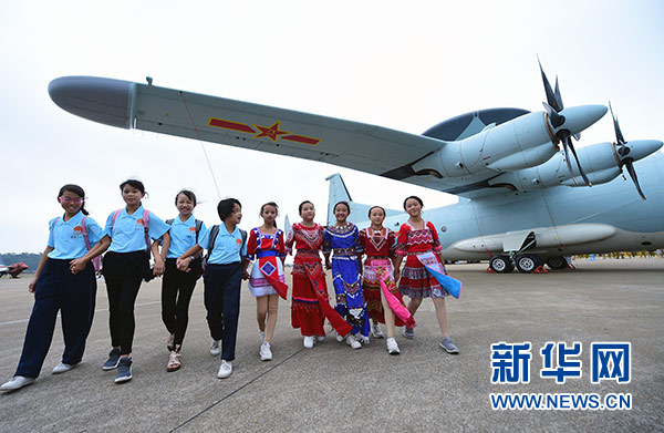 藍天春蕾女童在航展現場參觀(11月10日攝)。 新華社發(陳藝 攝)
