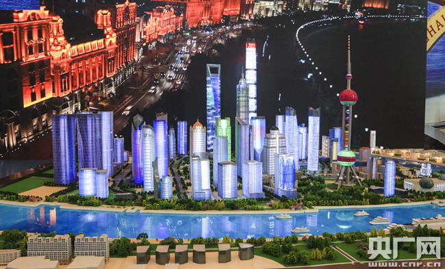 圖為上海浦東新區城市模型。(央廣網記者 荊宇琦 攝)