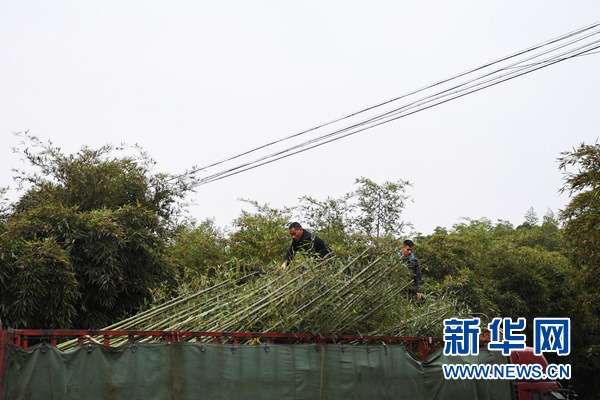 工作人員在位于重慶市大足區(qū)寶興鎮(zhèn)的雷竹林里裝運即將銷往外地的竹苗(11月20日攝)。新華社記者王全超攝