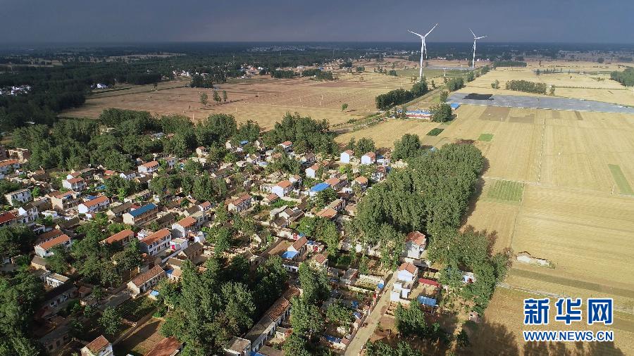 這是6月20日無人機拍攝的河南蘭考縣東壩頭鄉張莊村周圍的麥田和風機。 新華社記者 馮大鵬 攝