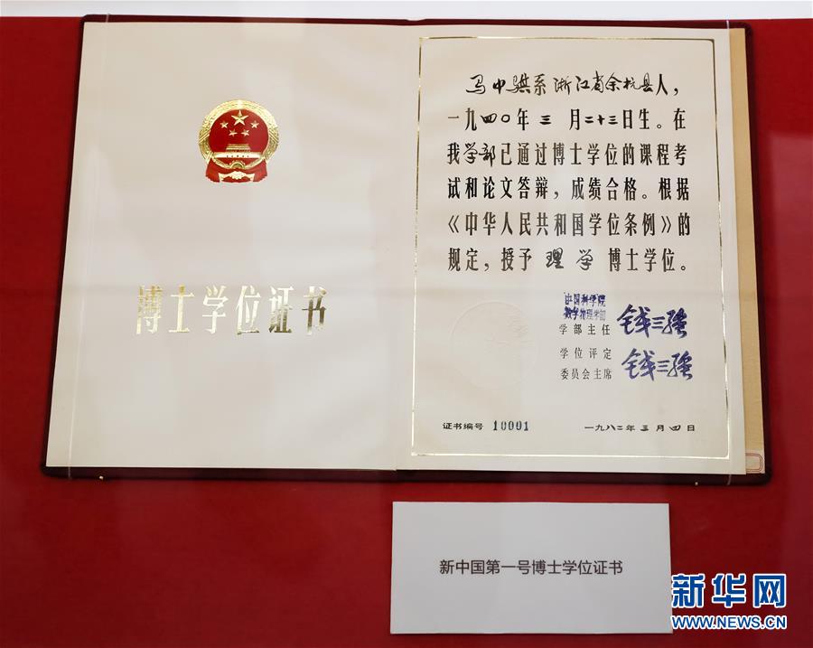 這是在“歷史巨變”展區拍攝的新中國第一號博士學位證書(11月15日攝)。新華社記者沈伯韓 攝