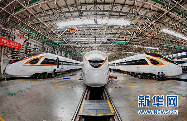 我國首列時速200至250公里高速動車組、首列時速300公里高速動車組、首列設(shè)計時速380公里高速動車組,以及首列“復(fù)興號”動車組……這里駛出的CRH380A,創(chuàng)下了時速486.1公里的世界高鐵運營試驗第一速。