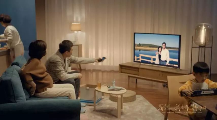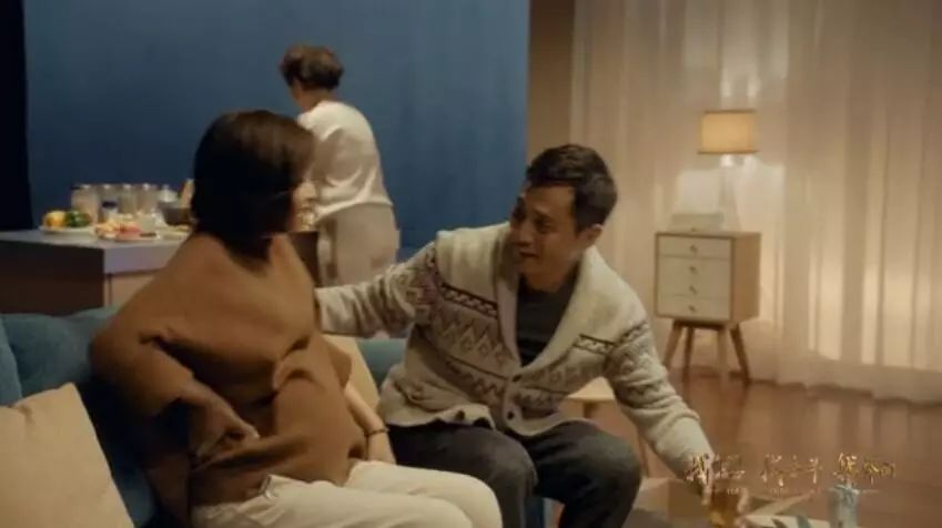 回到現代家庭的生活,人們的飲食、穿著、所用的生活電器都有明顯提升,這與之前八十年代的家庭形成了鮮明的對比。劉燁扶著懷孕的妻子一起坐在沙發(fā)上,妻子隆起的小腹代表著劉燁這個家庭對全面二孩政策的響應。
