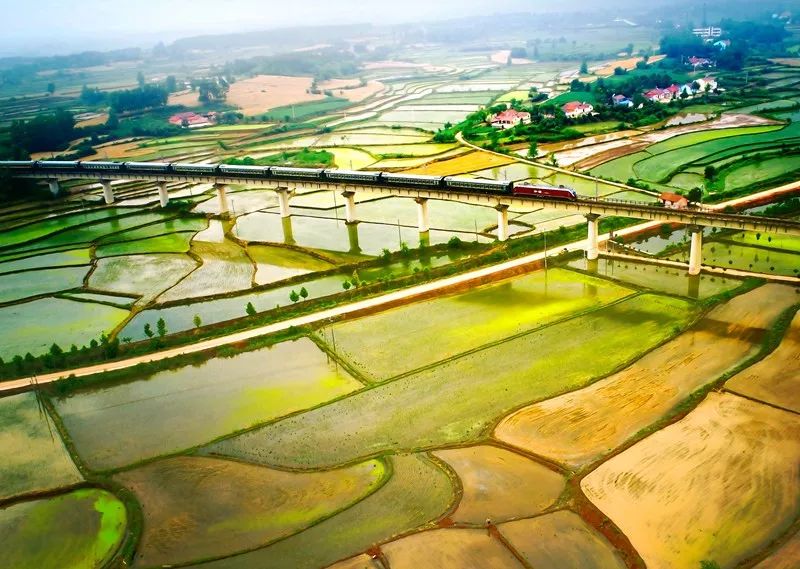 2018-05-19,湖北荊門鐘祥。和諧號列車奔馳在美麗的田園。作者:大胡子
