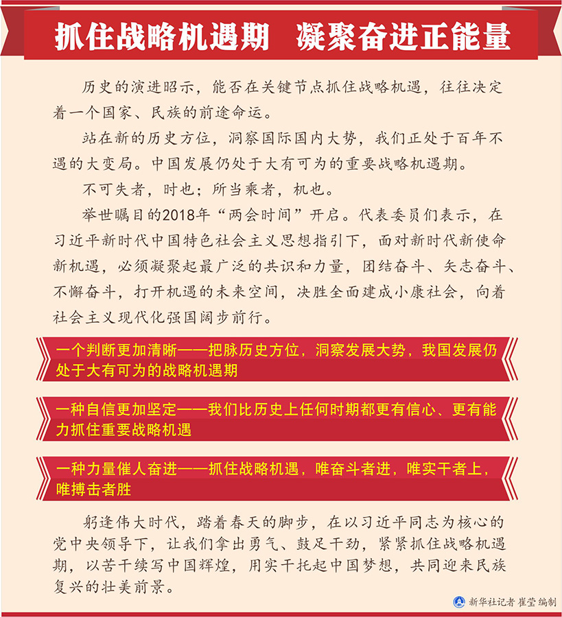 新華社北京3月3日電? 題:抓住戰(zhàn)略機遇期 凝聚奮進正能量