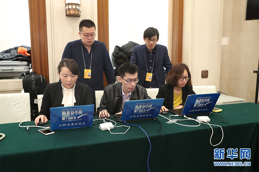 十三屆全國(guó)人大一次會(huì)議定于3月4日上午11時(shí)在人民大會(huì)堂新聞發(fā)布廳舉行新聞發(fā)布會(huì),由大會(huì)發(fā)言人就大會(huì)議程和人大工作相關(guān)的問(wèn)題回答中外記者的提問(wèn)。圖為新華網(wǎng)記者在做直播準(zhǔn)備。新華網(wǎng)/中國(guó)政府網(wǎng) 翟子赫 攝?