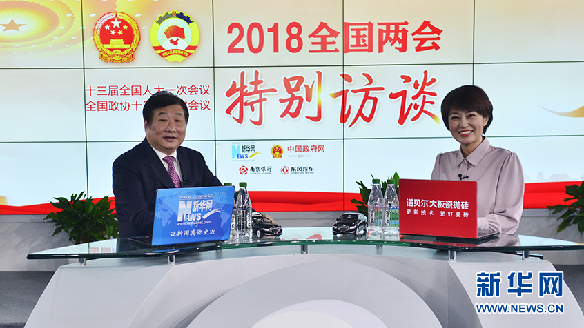 3月5日,全國人大代表、山東重工集團董事長、濰柴集團董事長譚旭光(左)做客新華網2018全國兩會特別訪談。新華網 李相博攝