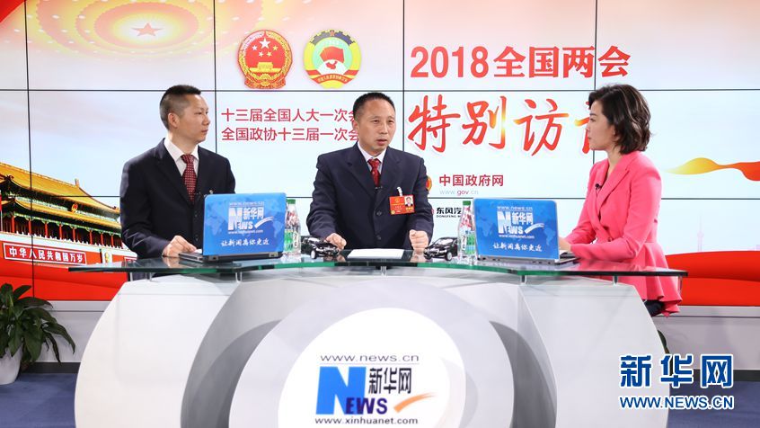 ??? 3月5日,神龍汽車有限公司武漢工廠制造一部沖焊分廠鈑金工楊祉剛(左)做客新華網(wǎng)2018全國兩會特別訪談。新華網(wǎng) 張斌/攝