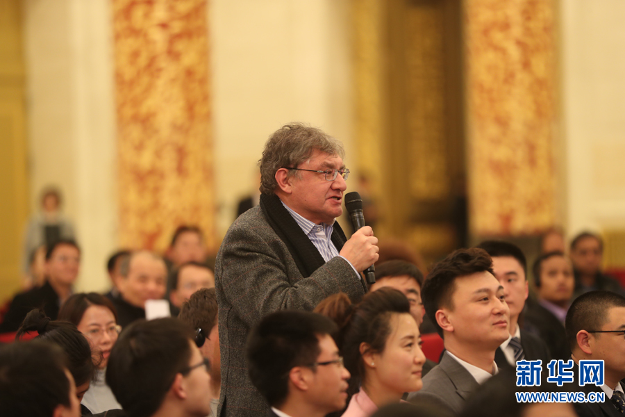 民主黨派中央和全國(guó)工商聯(lián)領(lǐng)導(dǎo)人記者會(huì)3月6日下午在人民大會(huì)堂金色大廳舉行,邀請(qǐng)民革中央主席萬(wàn)鄂湘、民盟中央主席丁仲禮、民建中央主席郝明金、民進(jìn)中央主席蔡達(dá)峰、農(nóng)工黨中央主席陳竺、致公黨中央主席萬(wàn)鋼、九三學(xué)社中央主席武維華、臺(tái)盟中央主席蘇輝、全國(guó)工商聯(lián)主席高云龍回答記者提問(wèn)。圖為俄羅斯塔斯社記者提問(wèn)。新華網(wǎng)/中國(guó)政府網(wǎng)?陳杰 攝?