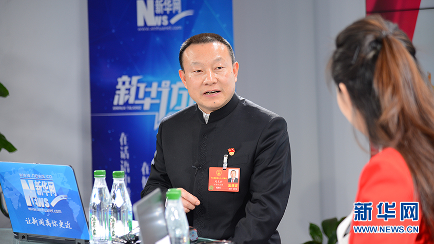 3月7日,全國(guó)人大代表、河南省信陽(yáng)市文新茶葉有限責(zé)任公司董事長(zhǎng)劉文新(左)做客新華網(wǎng)2018全國(guó)兩會(huì)特別訪(fǎng)談。新華網(wǎng) 楊濛攝