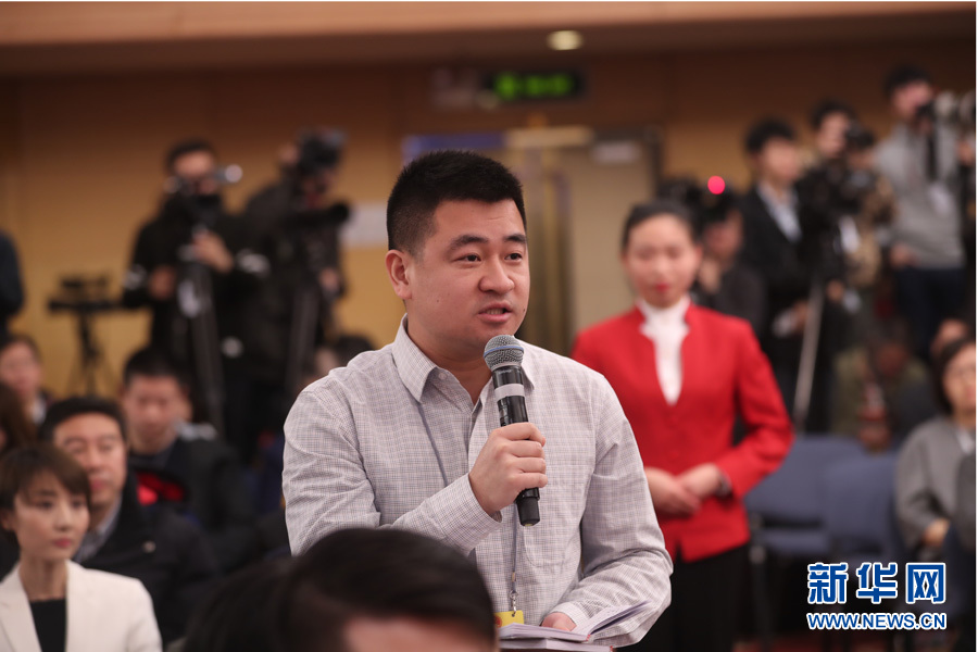 十三屆全國人大一次會議新聞中心于3月7日上午在梅地亞中心多功能廳舉行記者會,邀請財政部部長肖捷,副部長史耀斌、胡靜林就“財稅改革和財政工作”相關問題回答中外記者提問。圖為每日經濟新聞記者提問。新華網/中國政府網 陳杰 攝