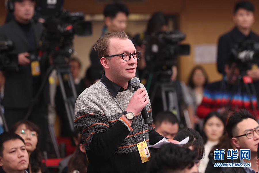 十三屆全國人大一次會議新聞中心于3月7日在梅地亞中心多功能廳舉行記者會,邀請國務(wù)院扶貧辦主任劉永富就“打好精準脫貧攻堅戰(zhàn)”的相關(guān)問題回答中外記者的提問。圖為中俄頭條記者提問。新華網(wǎng)/中國政府網(wǎng) 曲植 攝