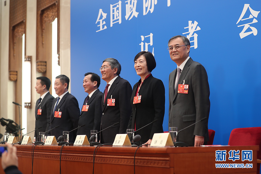 全國政協十三屆一次會議3月8日15:00在人民大會堂新聞發布廳舉行第二場記者會,邀請中央財經領導小組辦公室副主任楊偉民,中國進出口銀行董事長、黨委書記胡曉煉,農業部原副部長陳曉華,全國工商聯副主席、清華大學經濟管理學院院長錢穎一,中國中化集團有限公司黨組書記、董事長寧高寧就推動經濟高質量發展回答記者提問。圖為記者會現場。新華網/中國政府網 翟子赫 攝