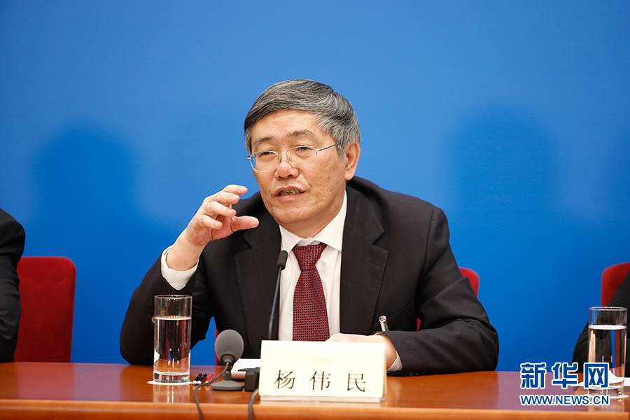 全國政協十三屆一次會議3月8日15:00在人民大會堂新聞發布廳舉行第二場記者會,邀請中央財經領導小組辦公室副主任楊偉民,中國進出口銀行董事長、黨委書記胡曉煉,農業部原副部長陳曉華,全國工商聯副主席、清華大學經濟管理學院院長錢穎一,中國中化集團有限公司黨組書記、董事長寧高寧就推動經濟高質量發展回答記者提問。圖為中央財經領導小組辦公室副主任楊偉民。新華網/中國政府網 翟子赫 攝