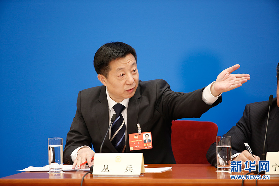 全國政協(xié)十三屆一次會議3月8日15:00在人民大會堂新聞發(fā)布廳舉行第二場記者會,邀請中央財經領導小組辦公室副主任楊偉民,中國進出口銀行董事長、黨委書記胡曉煉,農業(yè)部原副部長陳曉華,全國工商聯(lián)副主席、清華大學經濟管理學院院長錢穎一,中國中化集團有限公司黨組書記、董事長寧高寧就推動經濟高質量發(fā)展回答記者提問。圖為記者會主持人叢兵 。新華網/中國政府網 翟子赫攝